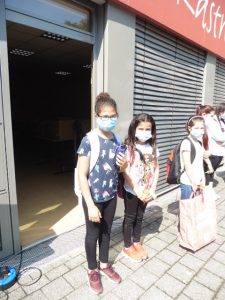 die Schüler waren zum einen natürlich die gesundheitliche Sicherheit aller und das Wohlbefinden an unserer Schule, sodass jeder gerne zur Schule kommt! Dann kam der spannende Augenblick und die Klassenlehrerinnen gaben bekannt, wer denn nun welche Klasse besucht. In der Klasse gab es neben einer kleinen Ersteinweisung noch ein kleines Präsent. Ich freue mich, dass alles so gut gelaufen ist am ersten Schultag, dass das Wetter mitgespielt hat und hoffe, dass Ihr eine schöne Zeit an unserer Schule haben werdet 🙂