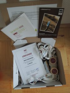 Ein Karton aus Berlin voller Überraschungen erreichte jetzt unser Zeitungsteam. Beim Schülerzeitungswettbewerb der Länder belegte Was Strammes den dritten Platz in der Kategorie Hauptschulen aus ganz Deutschland. Da die Preise in diesem Jahr wegen der Corona-Pandemie nicht vor Ort in Berlin überreicht werden konnten, erhielt die Redaktion einen Karton mit Schreibsachen, Büchern und Spielen. Dazu gab es einen Scheck von 250 Euro. Damit nicht genug. Bereits zum 39. Mal hatte der Rheinische Sparkassen- und Giroverband (RSGV) einen Wettbewerb für Schülerzeitungen durchgeführt. Bewertet wurden der formale und inhaltliche Gesamteindruck sowie die drei umfangreichsten Artikel der eingereichten Zeitungen. Unter den landesweit rund 100 beteiligten Schülerzeitungsredaktionen nahmen mehr als 30 Teams aus dem Geschäftsgebiet der Kreissparkasse Köln teil. In der Kategorie der Hauptschulen belegte Was Strammes hier den ersten Platz und kassierte 200 Euro Preisgeld. Da die Siegerehrung nicht wie gewohnt im Phantasialand stattfinden konnte, kann sich das Redaktionsteam über zehn Freikarten fürs Kino freuen. Eine weitere Überraschung fand sich kürzlich in den Briefkästen aller Bergheimer Haushalte. Dort landete nämlich eine Ausgabe des Stadtmagazins „bm“. Auf Seite 8 ist ein toller Artikel über die Nachwuchsredakteure zu finden. Auf dem Gruppenfoto ist unser aktuelles Team aus der Stufe 9 zu sehen, das gerade unter erschwerten Bedingungen an der neuen Ausgabe arbeitet.
