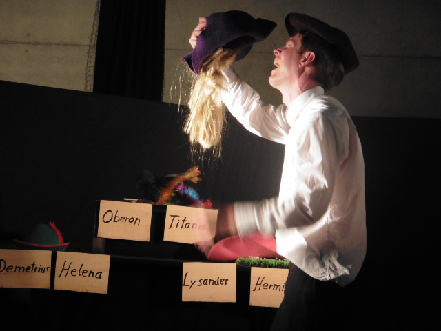 Am 05.06.2015 gastierte Philipp Steimel mit Shakespearces „Sommernachtstraum“ bei uns in der Mensa. Philipp Steimel verstand es mit seinem Ein-Mann-Theater die verschiedenen Personen des Stückes nur mit Hilfe von unterschiedlichen Hüten, Mimik und Stimmen auf der Bühne erscheinen zu lassen. Die 9er-Klassen, die den Sommernachtstraum aus dem Unterricht kannten, meinten hinterher, dass sie ohne Kenntnis des Stückes wahrscheinlich kaum etwas verstanden hätten.