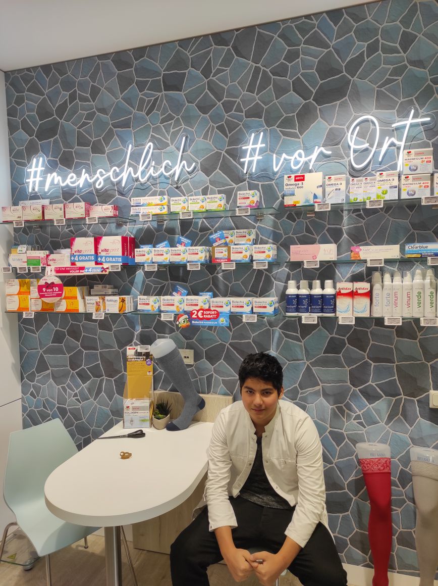 Während meines Praktikums in der Apotheke erledigte ich Botengänge, half dabei, Medikamente zu sortieren und unterstützte das Team beim Daten erfassen. Besonders spannend war der direkte Kundenkontakt, bei dem ich Fragen beantworten und kleine Aufgaben übernehmen durfte. Die abwechslungsreichen Tätigkeiten gaben mir wertvolle Einblicke in den Apothekenalltag.