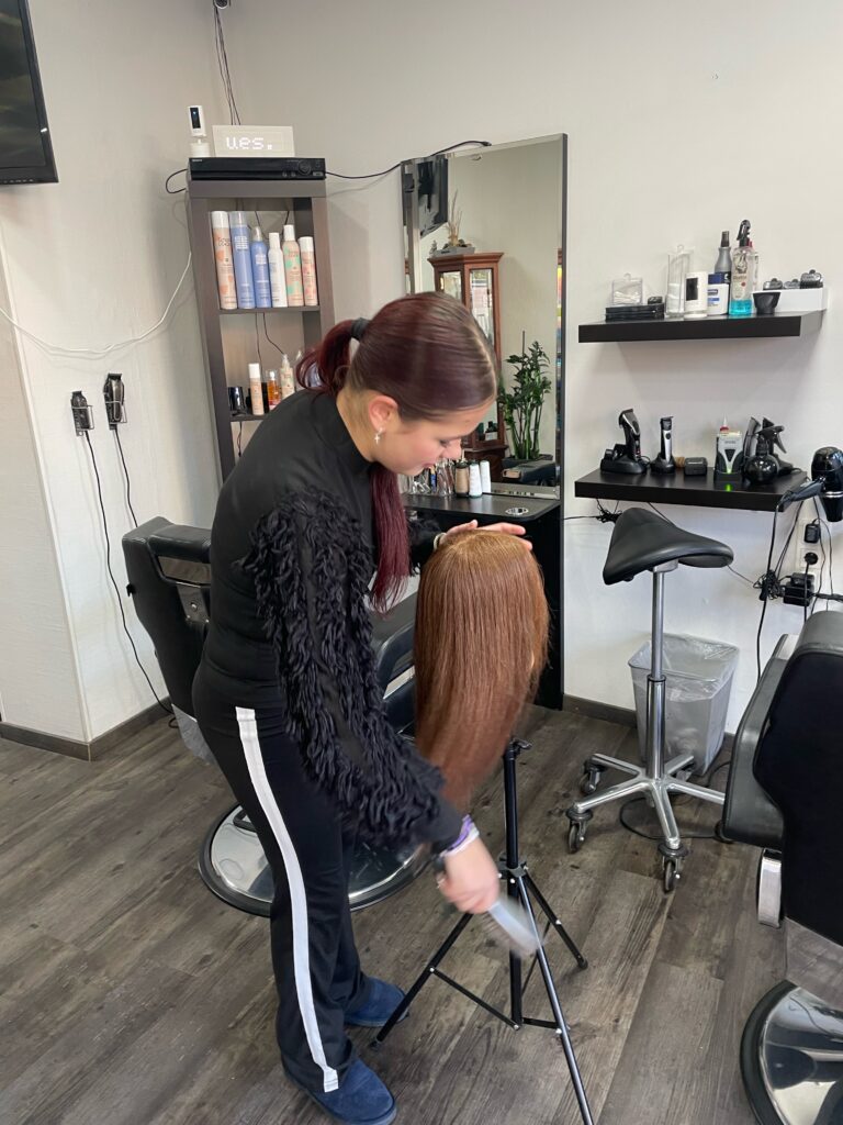 Ich absolviere mein Praktikum in einem Friseursalon. Während meines Praktikums durfte ich Haare kämmen, Arbeitsmaterialien vorbereiten und beim Stylen einer Übungspuppe helfen. Ich bekam erste Einblicke in verschiedene Schneide- und Pflegetechniken und unterstützte das Team bei kleinen Aufgaben. Dabei lernte ich, wie wichtig Hygiene, Genauigkeit und ein freundlicher Umgang mit Kunden sind. Ich kann mir gut vorstellen, später in diesem Beruf zu arbeiten.