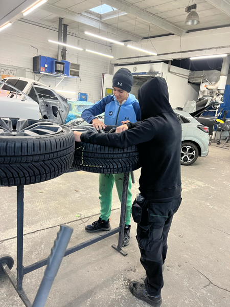 Zakaria und Tareq absolvieren ihr Praktikum in einem Fachbetrieb für Lackier- und Karosseriearbeiten. Während dieser Zeit erhalten sie Einblicke in verschiedene Arbeitsabläufe, wie die Fahrzeugaufbereitung und die Vorbereitung von Oberflächen.