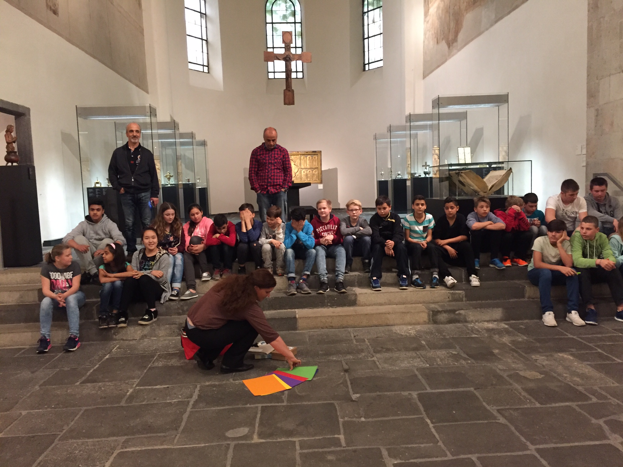 Am Dienstag den 24.05.2016 holte der Museumsbus die Klasse 5a und die Auffangklasse 3 um 9:00 Uhr von der Schule ab und brachte uns zum Museum Schnütgen. Nachdem wir unsere Jacken und Taschen abgebeben hatten, starteten wir unsere Führung unter dem Thema: Man lebt nur einmal?! Symbole der Vergänglichkeit entdecken und verstehen. Wir sahen uns dazu verschiedene oft unheimliche Ausstellungsstücke an und erforschten gemeinsam unter der Leitung einer Museumsmitarbeiterin, was diese über die Menschen