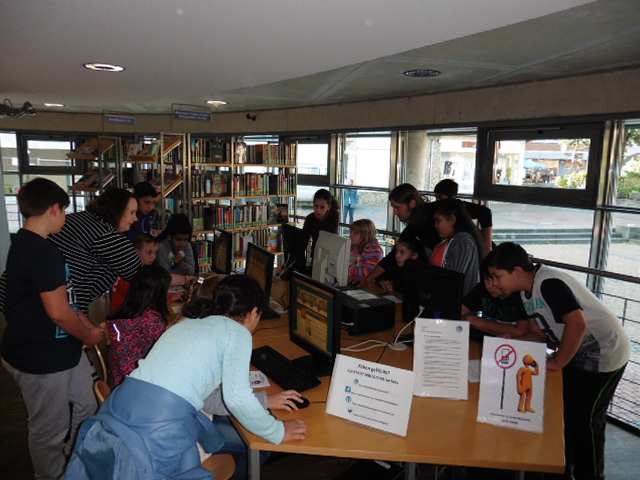 Die 5er Klassen besuchten in dieser Woche die Stadtbibliothek. In einer Büchereiführung lernten sie unter anderem die Standorte der ausleihbaren Medien kennen oder wie sie die Medien ausleihen können. Das Interesse der Schülerinnen und Schüler war groß, sofort ein Buch oder ein Spiel auszuleihen! Doch dabei vergaßen einige, dass sie noch keinen Bibliotheksausweis besitzen. Sehr bald wollen sie deswegen mit ihren Eltern wiederkommen und sich anmelden.