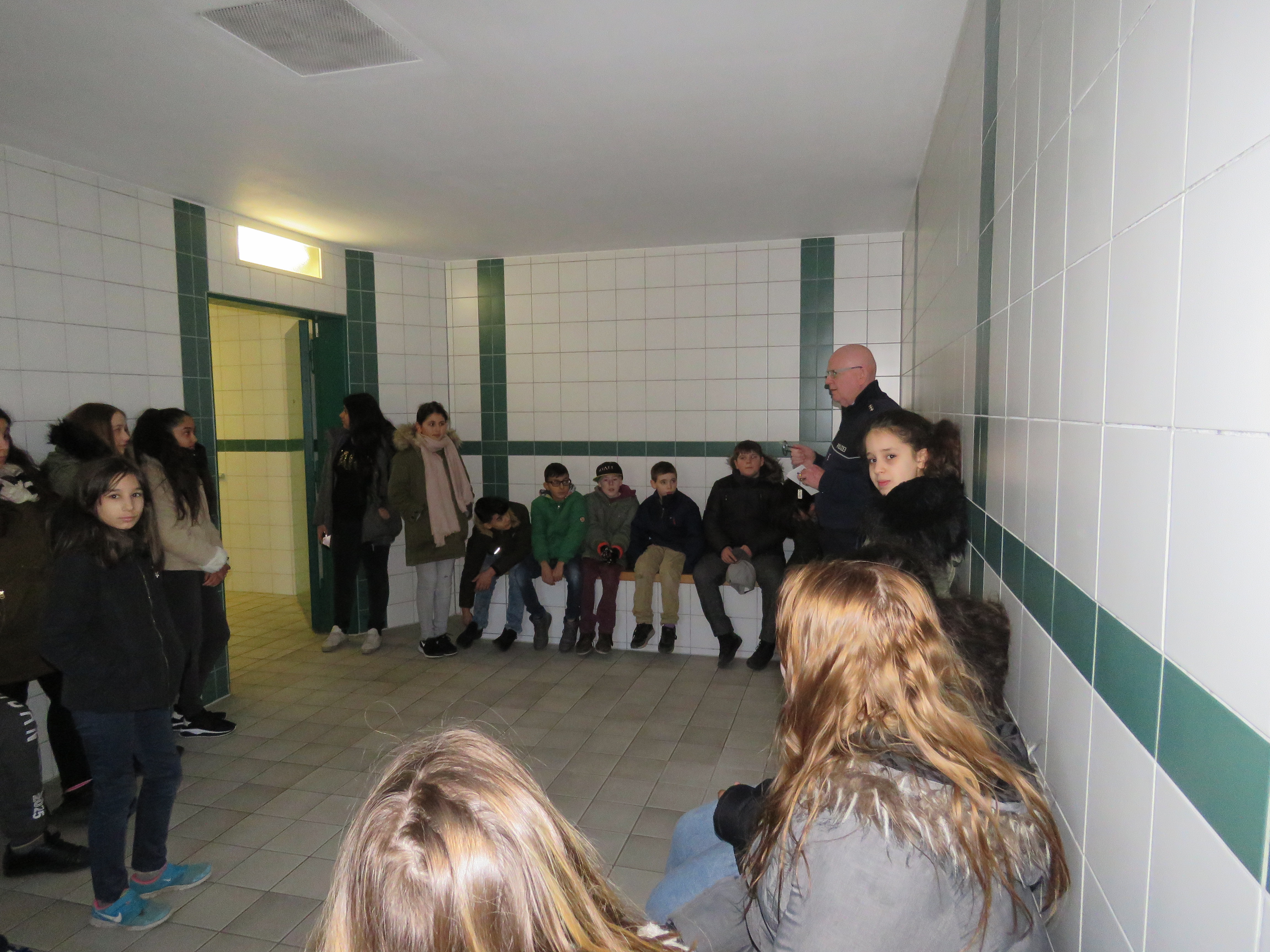 Eine gestohlene Uhr führte uns zur Polizei, dann in eine Zelle und auf dem Rückweg begegnete uns dann noch eine Eule. Bei einem Unterrichtsgang am Donnerstag der vergangenen Woche fanden wir eine Uhr, die offensichtlich gestohlen war, denn sie trug noch ein Preisschild eines Schmuckgeschäftes. Am Dienstag dieser Woche hatten wir dann einen Termin bei der Polizei in Bergheim. Bei eisigen Temperaturen machten wir uns alle zusammen auf den Weg und wurden schon von Herrn Schmitz, dem Bezirksbeamten erwartet. Er nahm die Uhr in Augenschein und bedankte sich das wir die Uhr abgegeben haben. Dann erklärte er uns, dass man Fundsachen immer zurückgeben muss und wie nun weiter mit der Uhr verfahren wird. Nun ergab sich in einem
