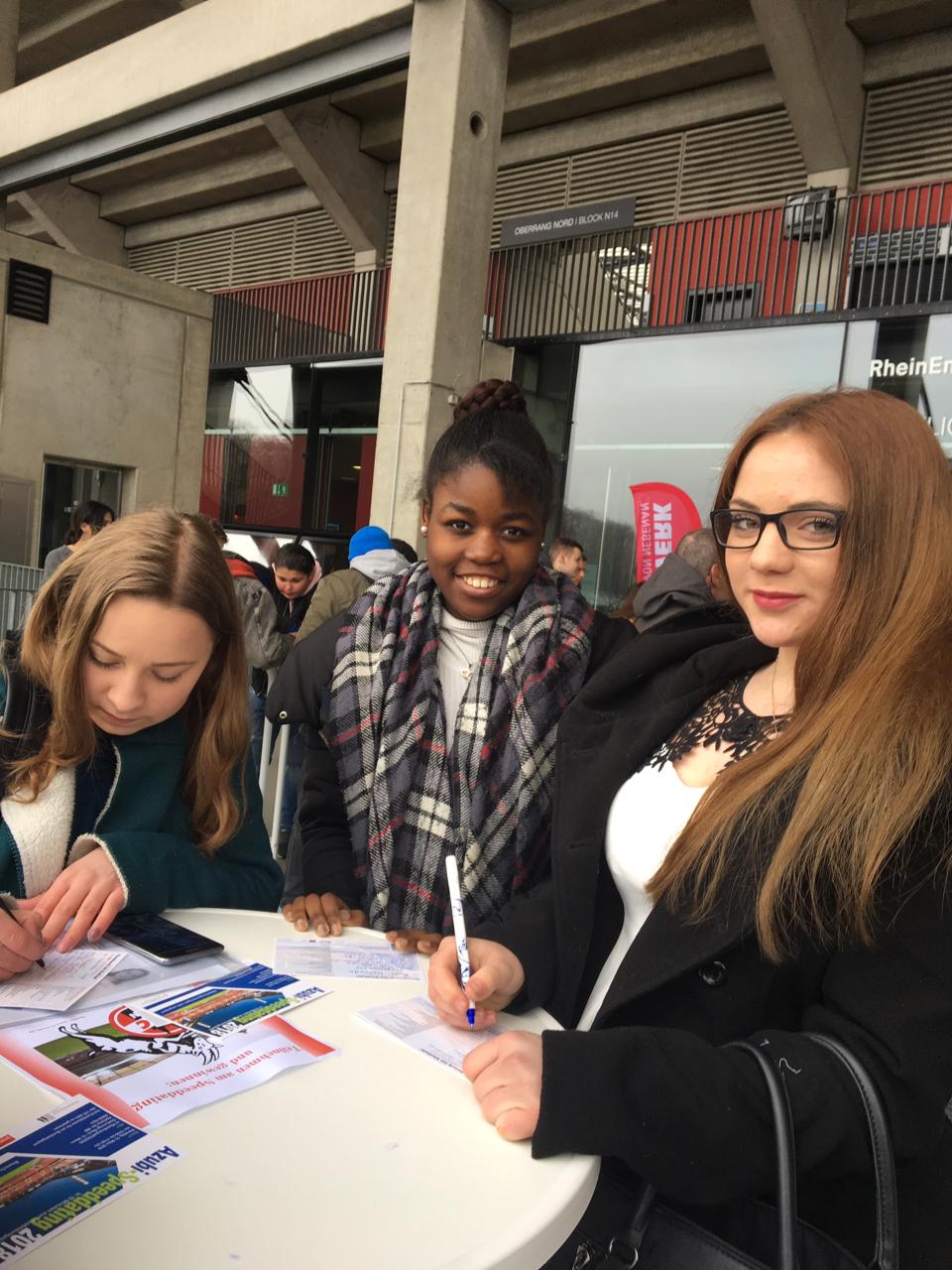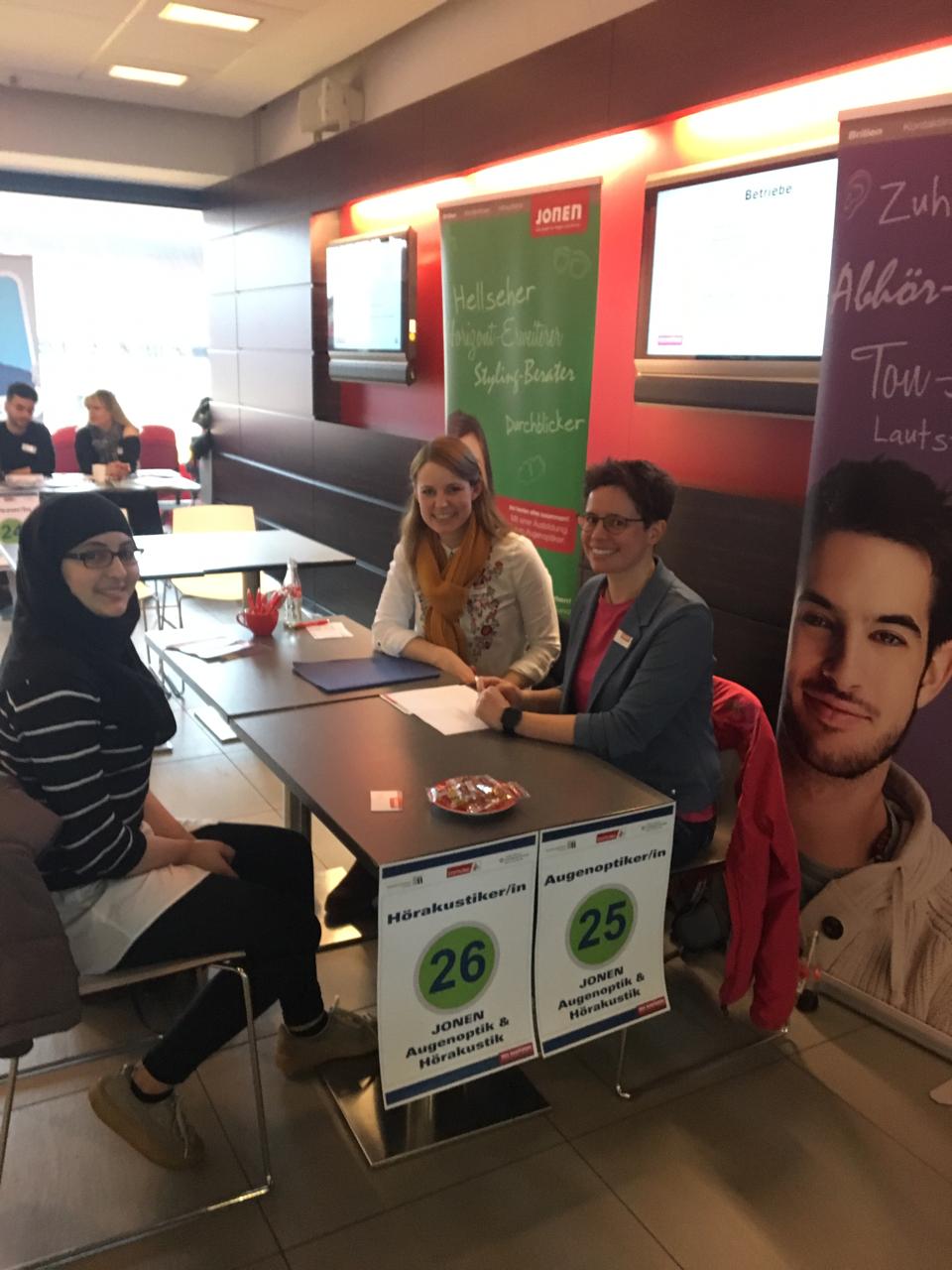 Auf einer Etage präsentierten sich beim Azubi-Speeddating 45 Firmen, die Ausbildungsplätze anboten. Die Betriebsvertreter/innen hatten ihren festen Platz an den Tischen und im 10- Minutentakt nahmen die Bewerber/innen Platz, um sich vorzustellen. In der nächsten Runde bildeten sich neue Paarungen. Ganz vorne mit dabei waren die EKS Schüler aus der 10A 4, die mit ihren Bewerbungen in der Hand die Chance ergriffen haben, um sich bei den Unternehmen aus verschiedenen Branchen vorzustellen. Vor den Kurzgesprächen waren die Schüler/innen sehr aufgeregt, doch sie haben die Gespräche mit Bravour gemeistert.