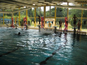 Das A erscheint im Alphabet knapp vor dem B – ein Omen für das Schwimmfest der Stufe fünf, bei dem jetzt 31 Schülerinnen und Schüler aus der 5a und der 5b aktiv waren. Dass bei den zahlreichen Spielen und kleinen Wettbewerben die Klasse 5a von Frau Tangemann knapp die Nase vorn hatte vor der 5b …