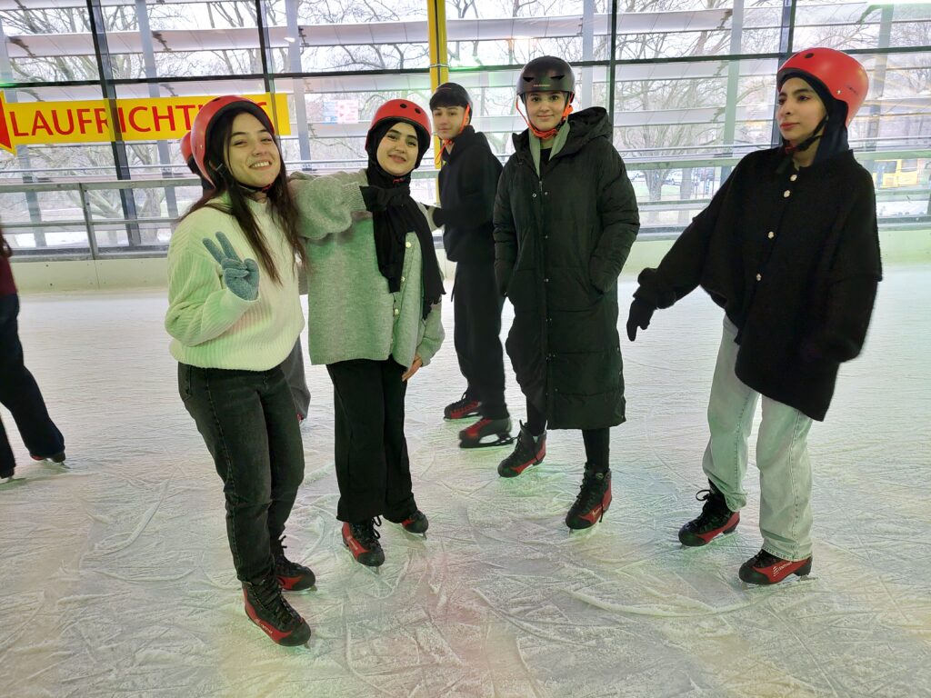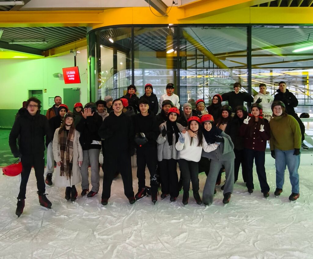 Nachdem wir bei Schnee und Temperaturen um den Gefrierpunkt buchstäblich durch Kölns Geschichte geschlittert waren, konnten alle ihre Fitness und ihre sportlichen Fähigkeiten beim echten Schlittschulaufen im Lentpark unter Beweis stellen. Und da zeigten sich viele hervorragende Talente in diesem Sport. Andere übten sich in ihren ersten Versuchen auf der Eisbahn und wurden dabei von den erfahrenen Läufern tatkräftig unterstützt.